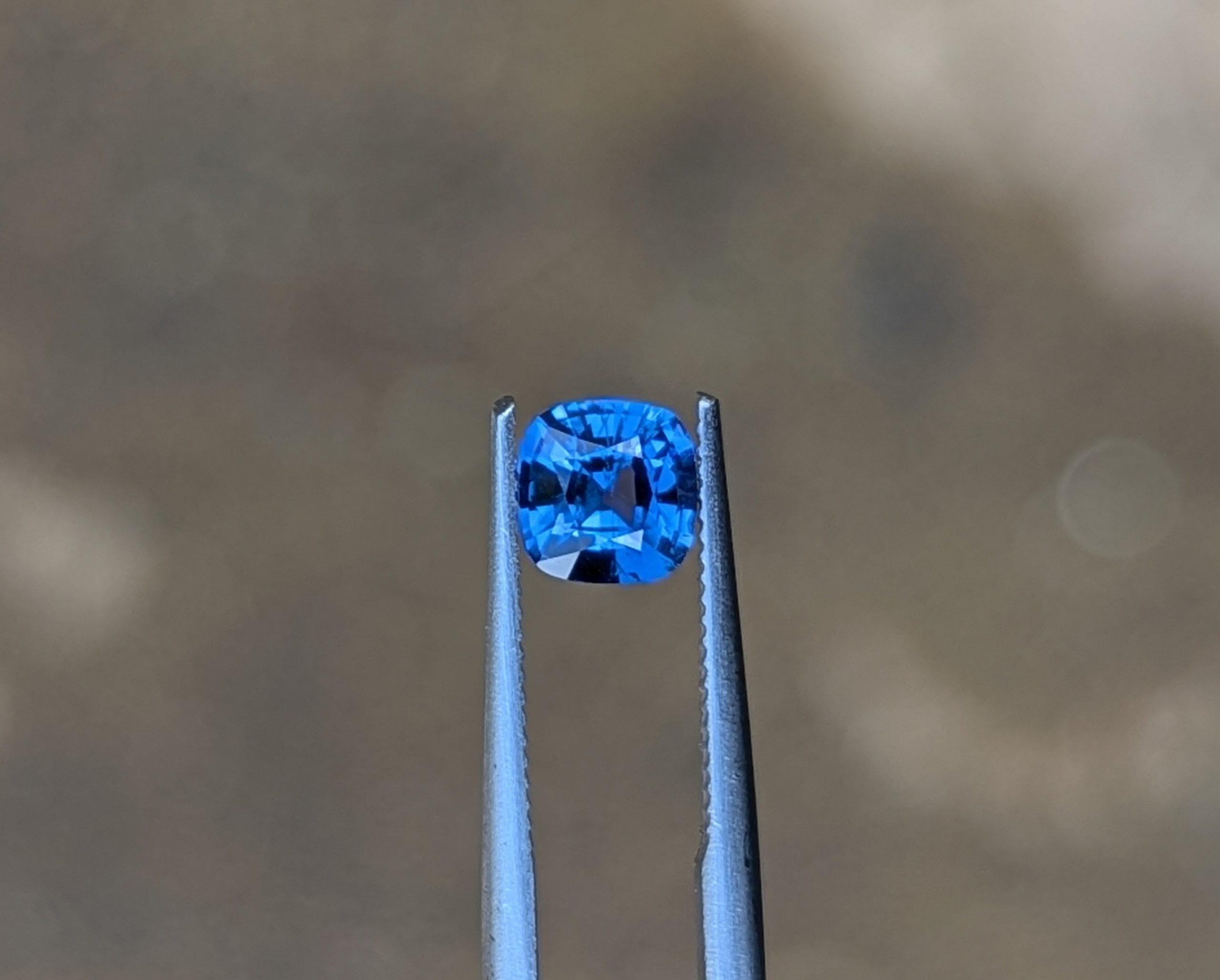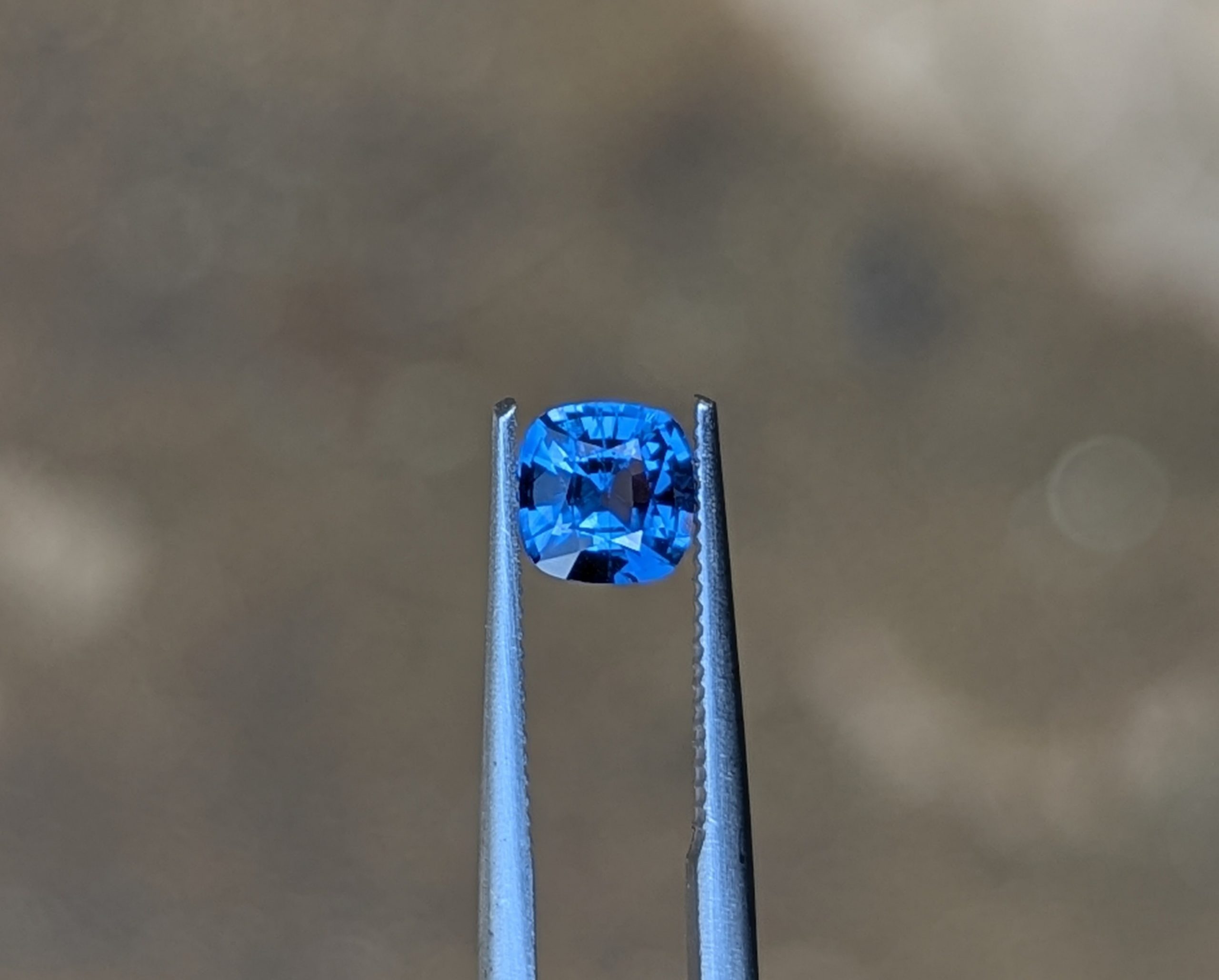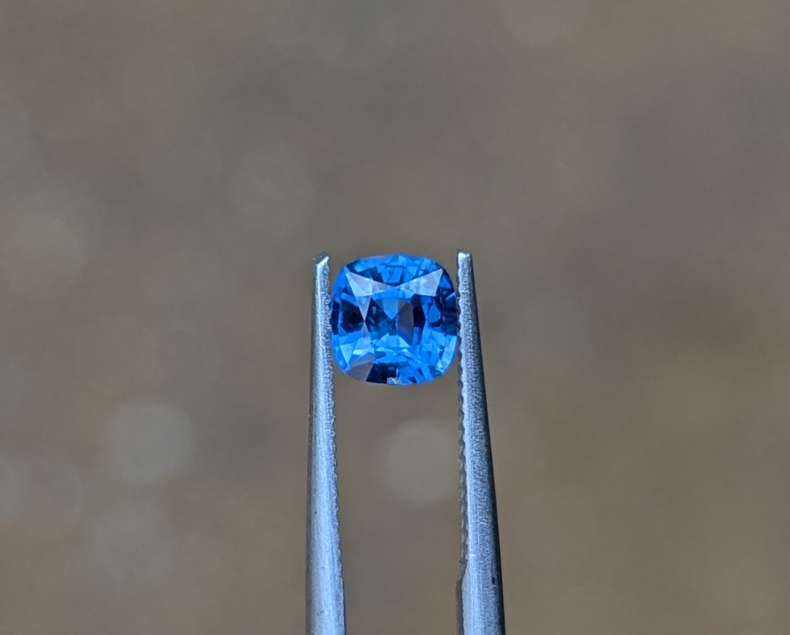 This gorgeous unheated untreated cornflower blue sapphire weighs 0.80 carats and features a captivating blue color. It is expertly cut into a cushion shape, adding to its elegance and charm. With dimensions of approximately 8.4L x 7.4W x 6.6H mm, it possesses a well-proportioned and visually appealing stone.