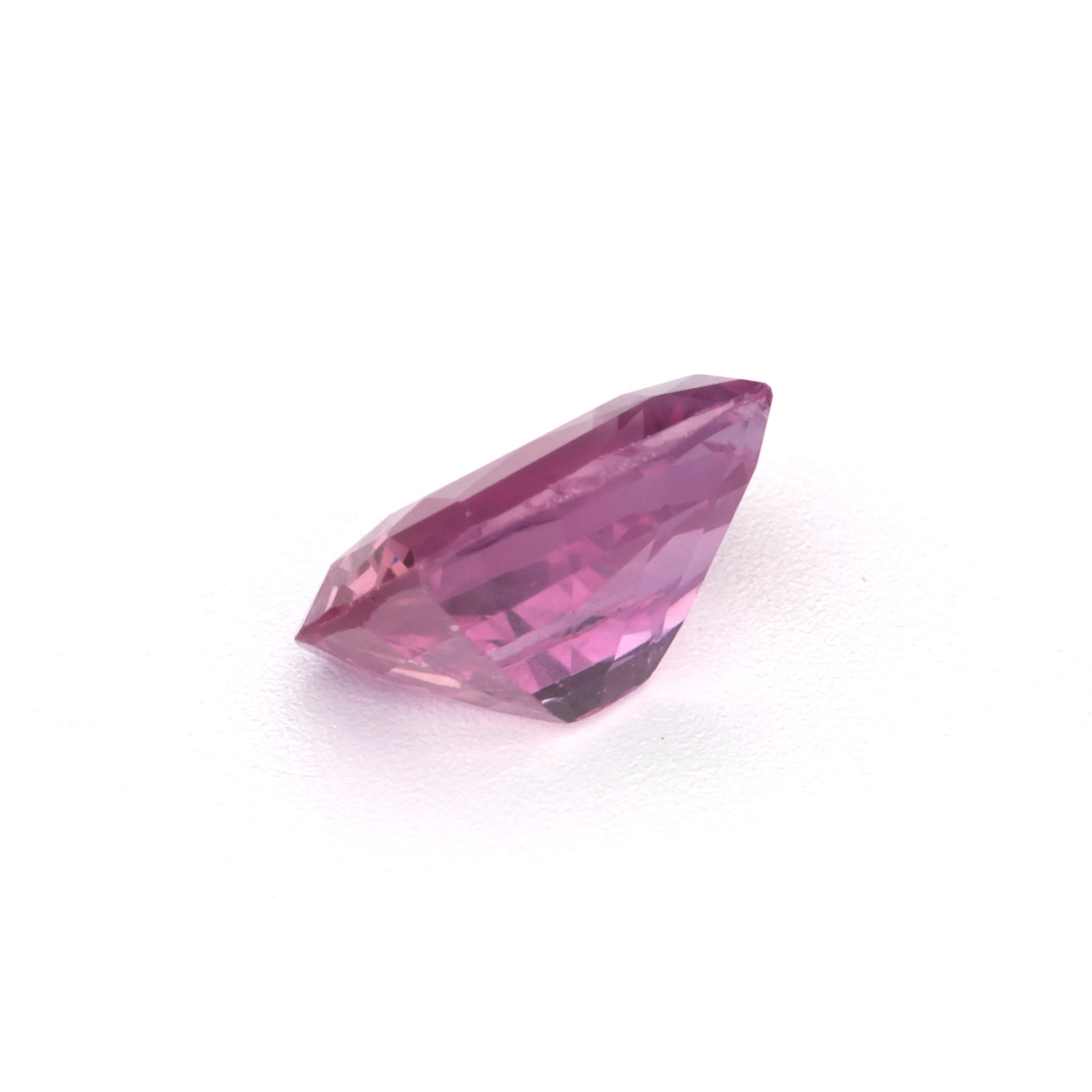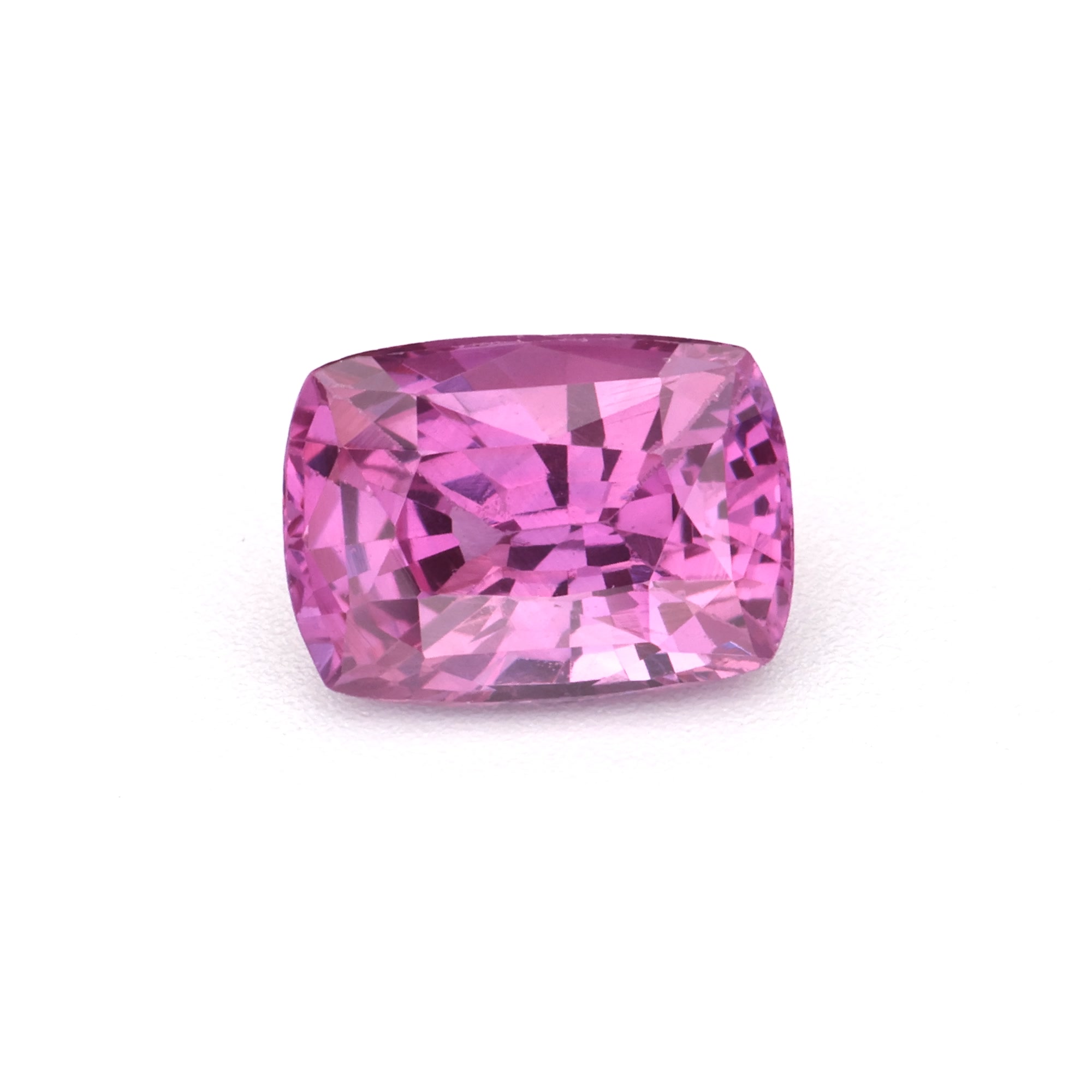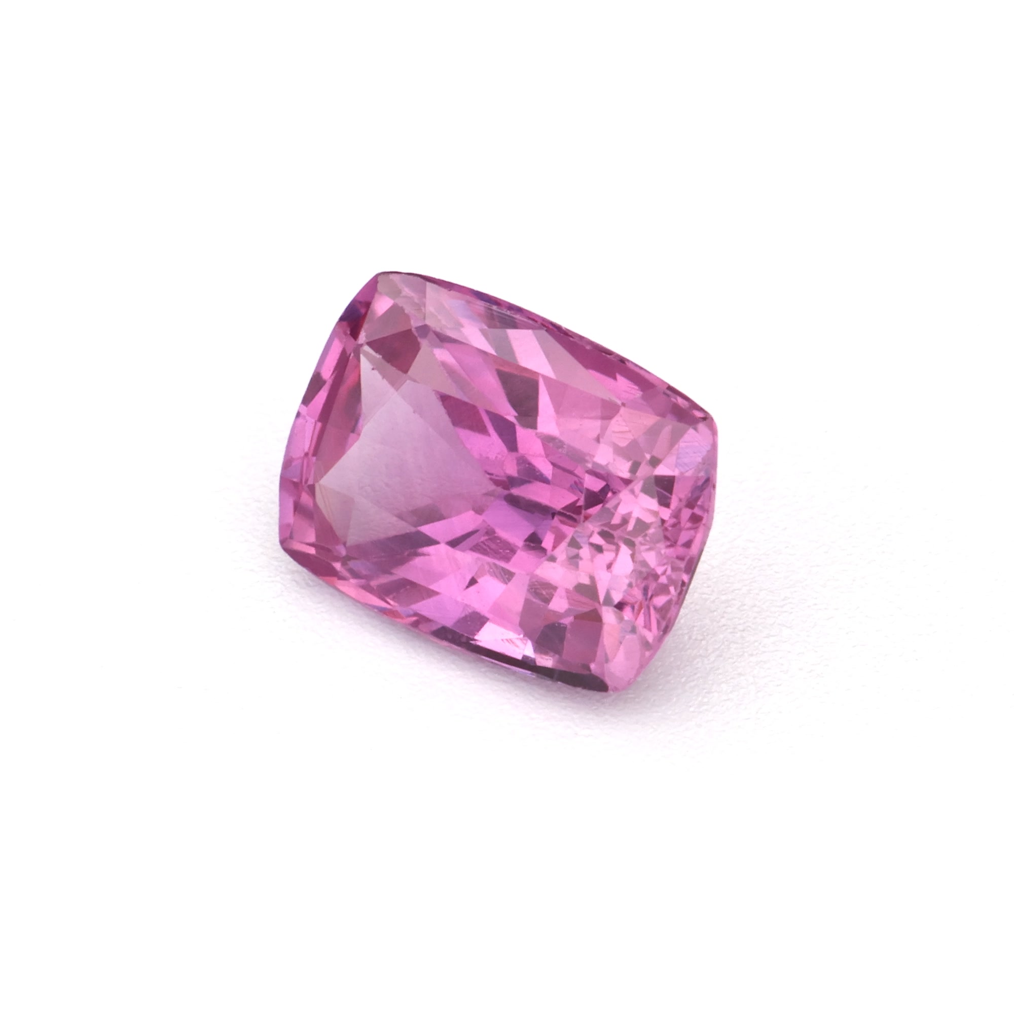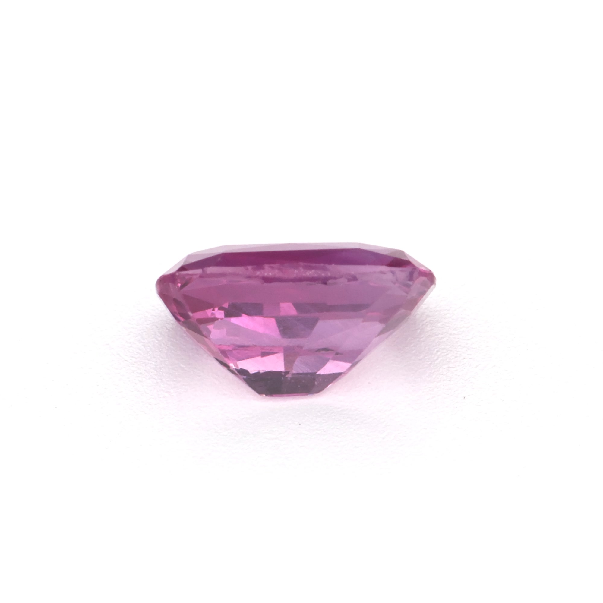 This stunning pink sapphire weighs 0.84 carats and features a captivating purplish pink color. It is expertly cut into a cushion shape, adding to its elegance and charm. With dimensions of approximately 6.2L x 4.5W x 3.3H mm, it possesses a well-proportioned and visually appealing stone.
