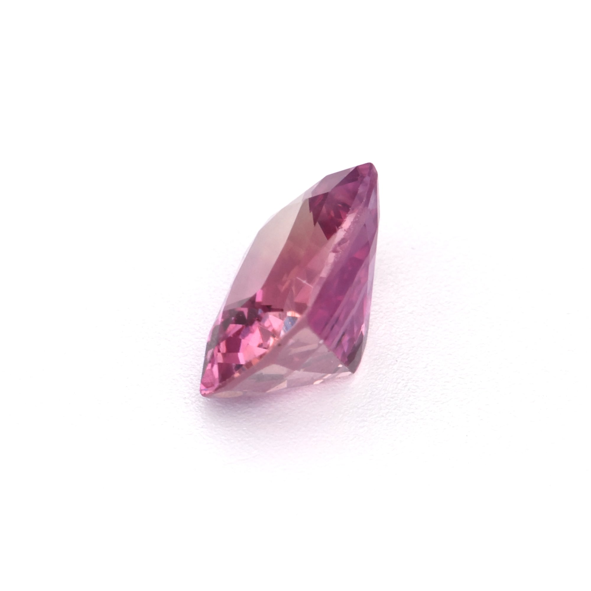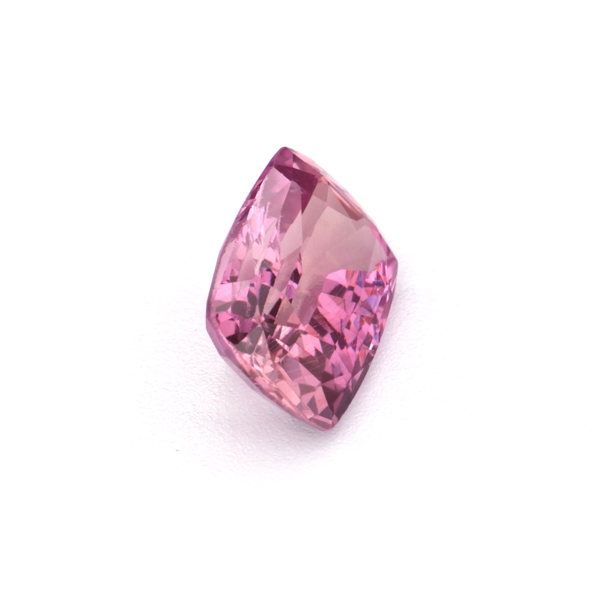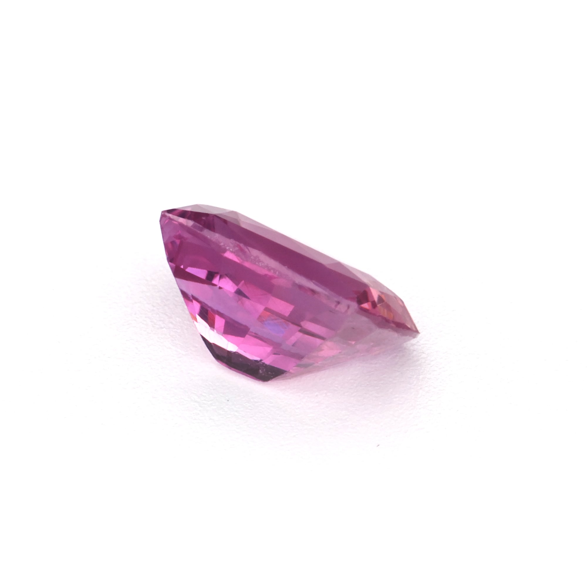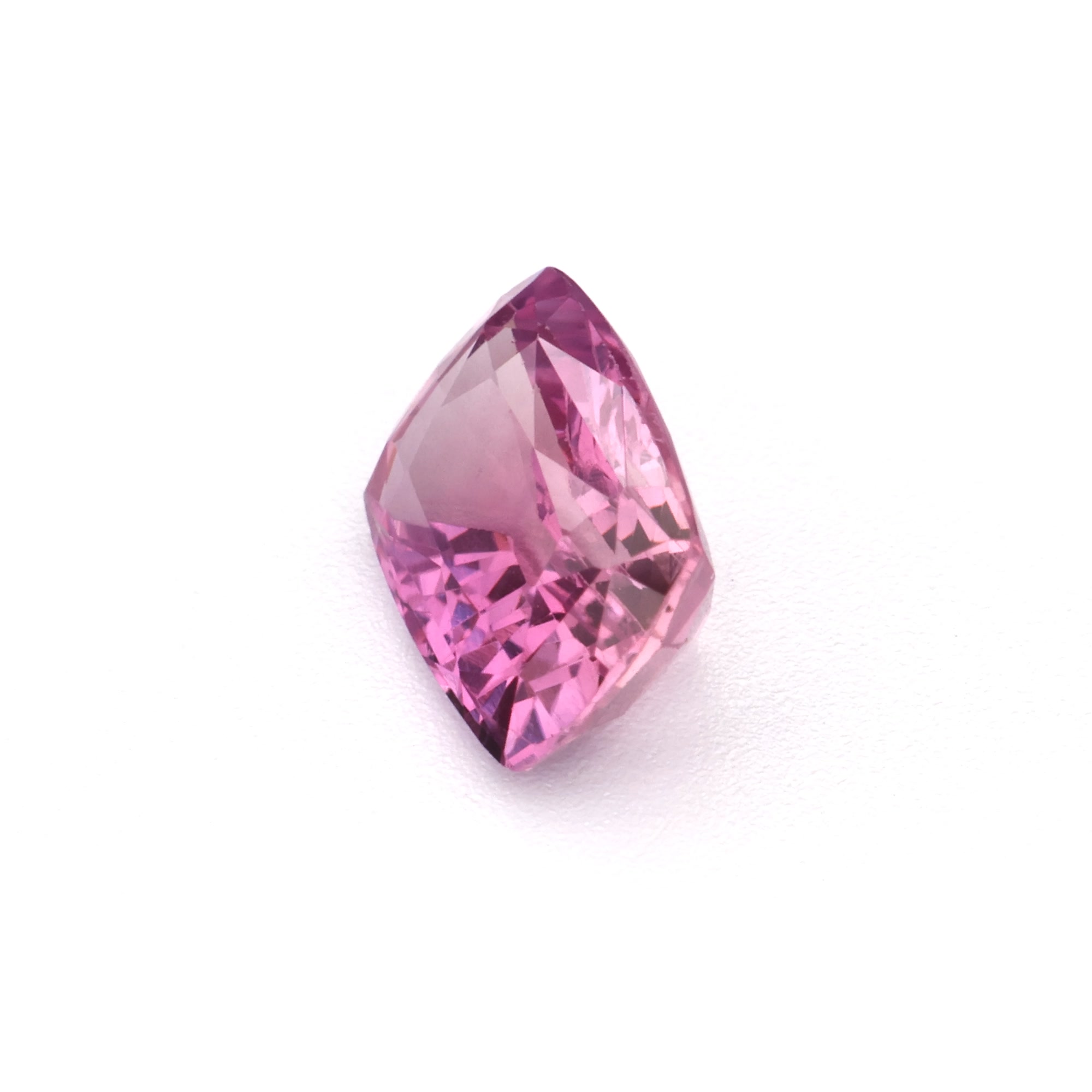 This stunning pink sapphire weighs 0.84 carats and features a captivating purplish pink color. It is expertly cut into a cushion shape, adding to its elegance and charm. With dimensions of approximately 6.2L x 4.5W x 3.3H mm, it possesses a well-proportioned and visually appealing stone.