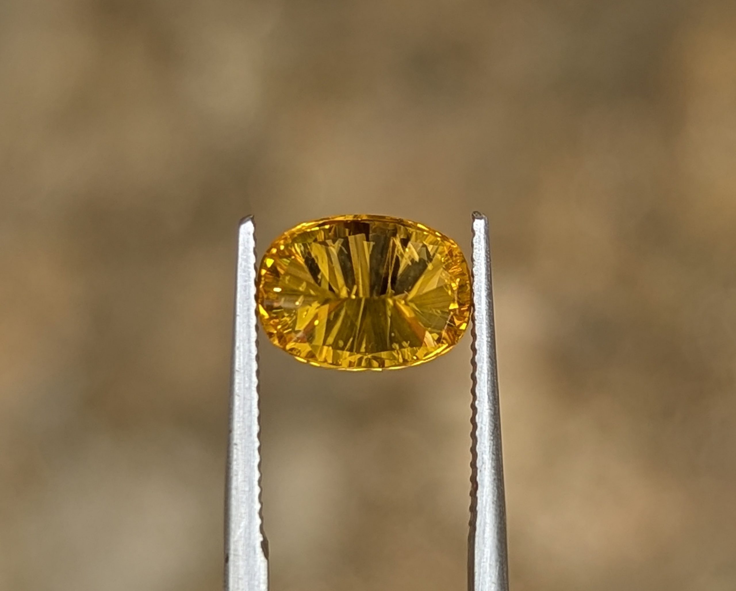2.25 ct Yellow Sapphire Concave Cut from Sri Lanka, Genuine Ceylon Oval Shaped Precision Cut Loose Gemstone, 8.7 x 6.4 x 4.5mm